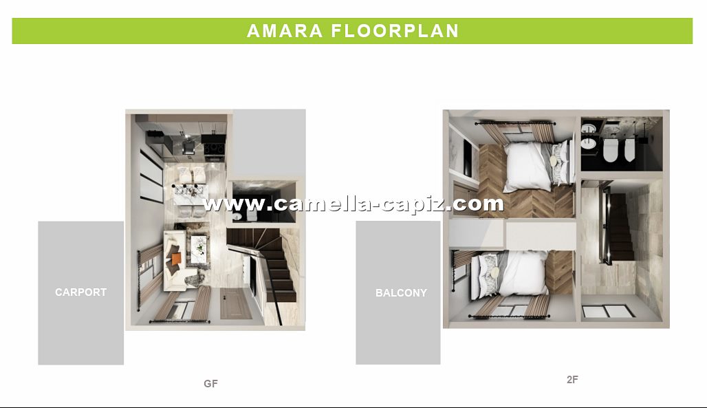 Amara has a lot area of 88 and a house area of 52 sqm (or 72 sqm with balcony option). It's a single attached 2-storey house with two bedrooms, two toilets and baths, a living area, dining area, kitchen, a carport, provision for a balcony, and a laundry and service area. The grand master's bedroom is located at the second floor with exclusive toilet and bathroom. If you want the biggest space and all the extra rooms that you can have, Amara model is for you!